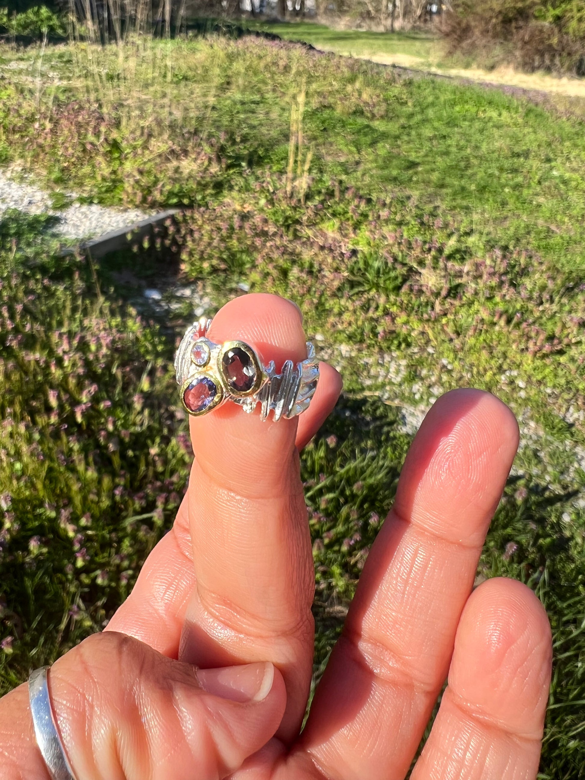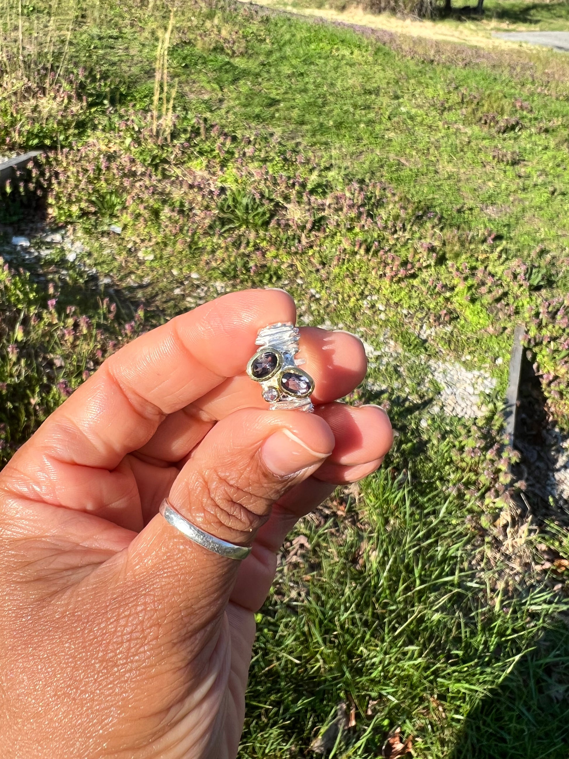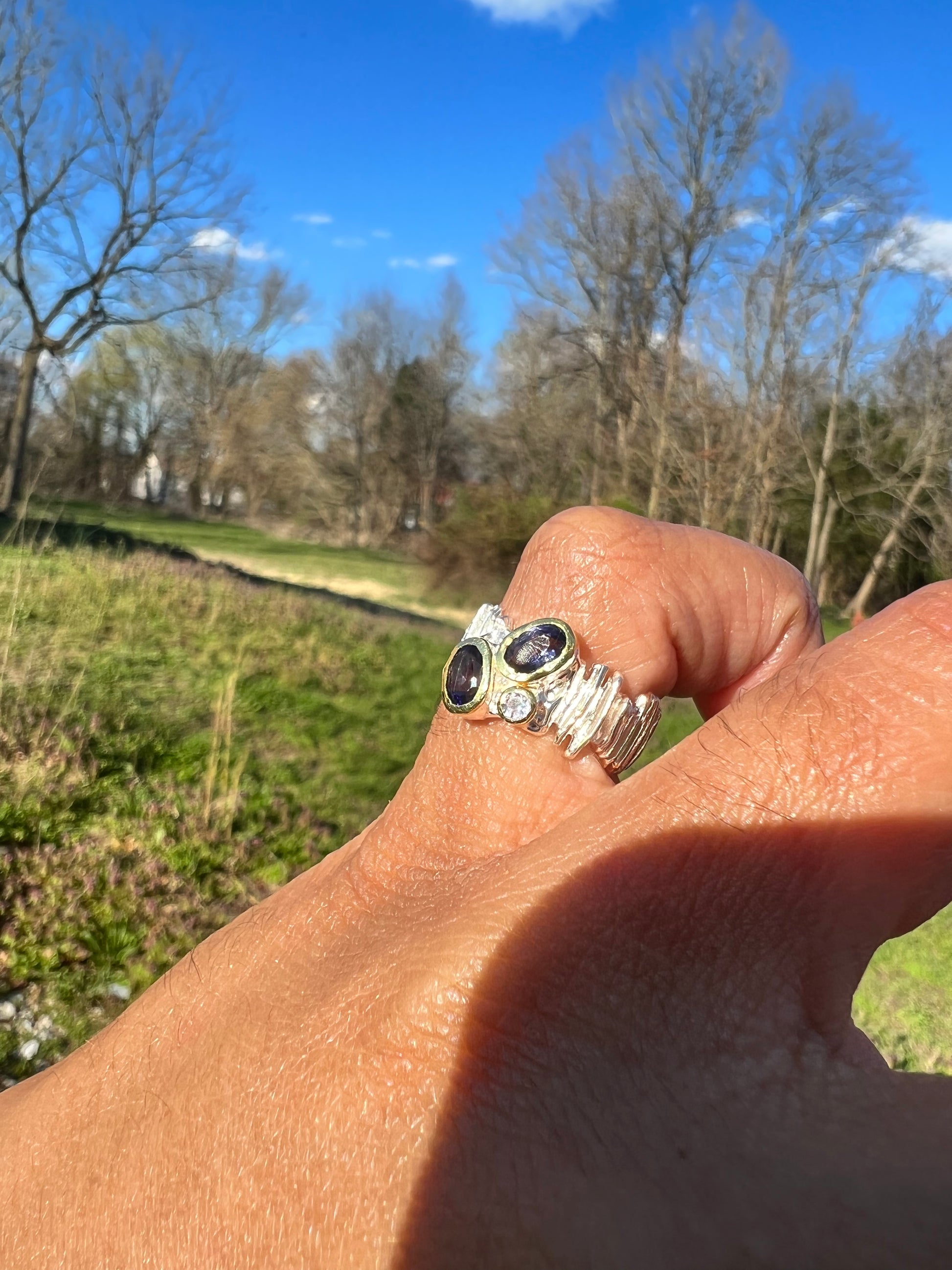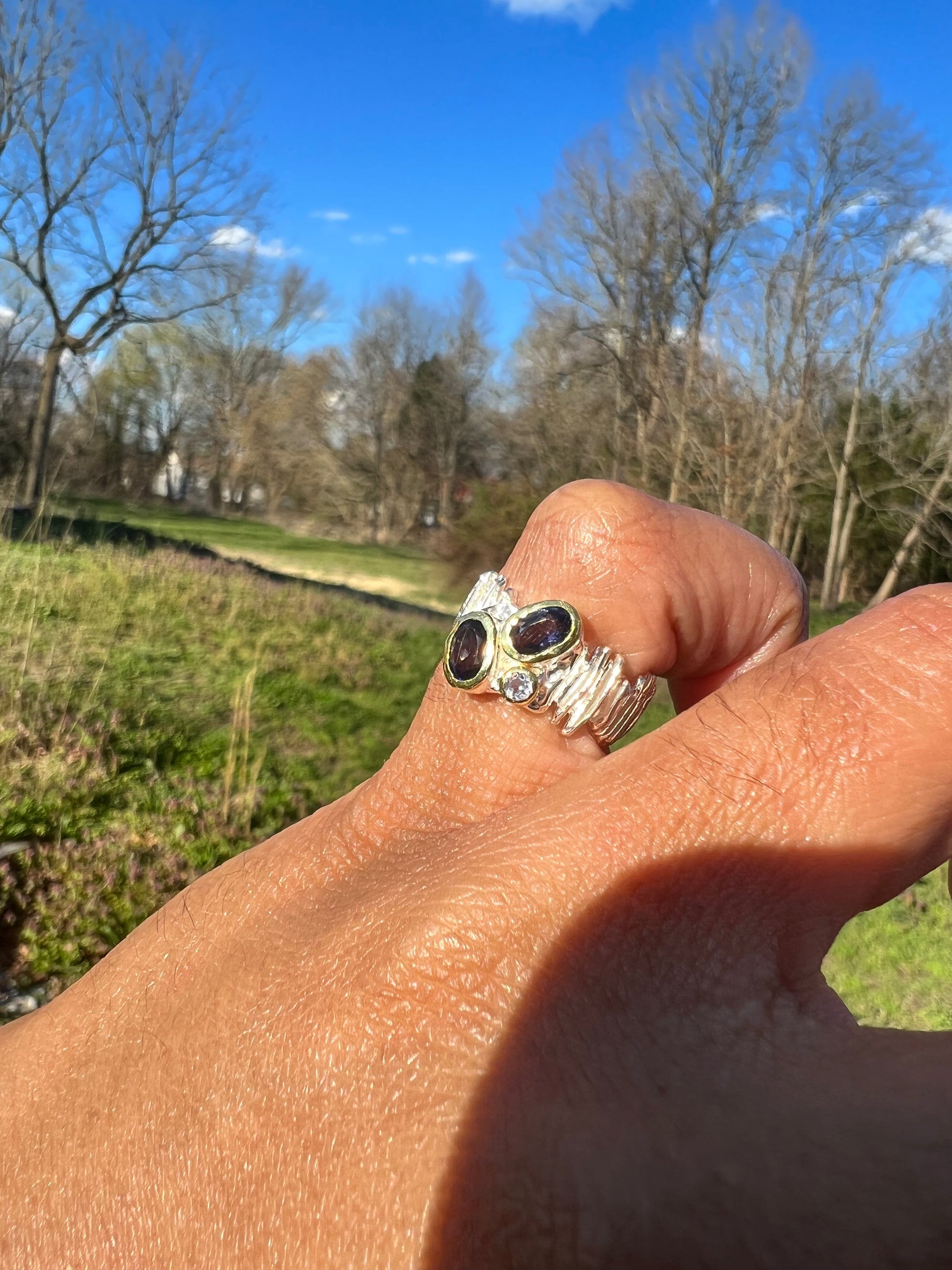 Iolite and Tanzanite 925 sterling silver ring size 5.5 14k yellow gold over 925 ster